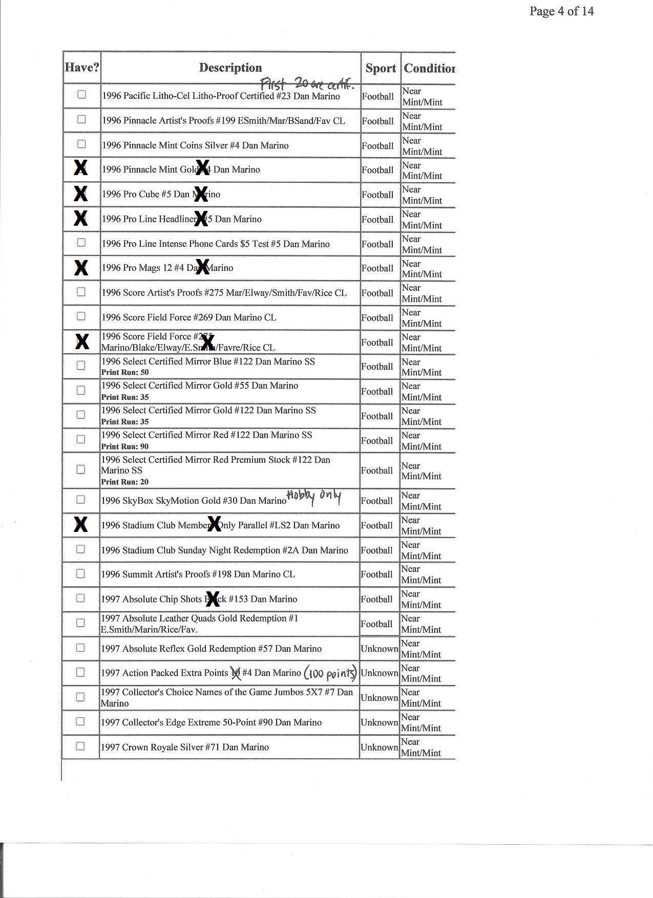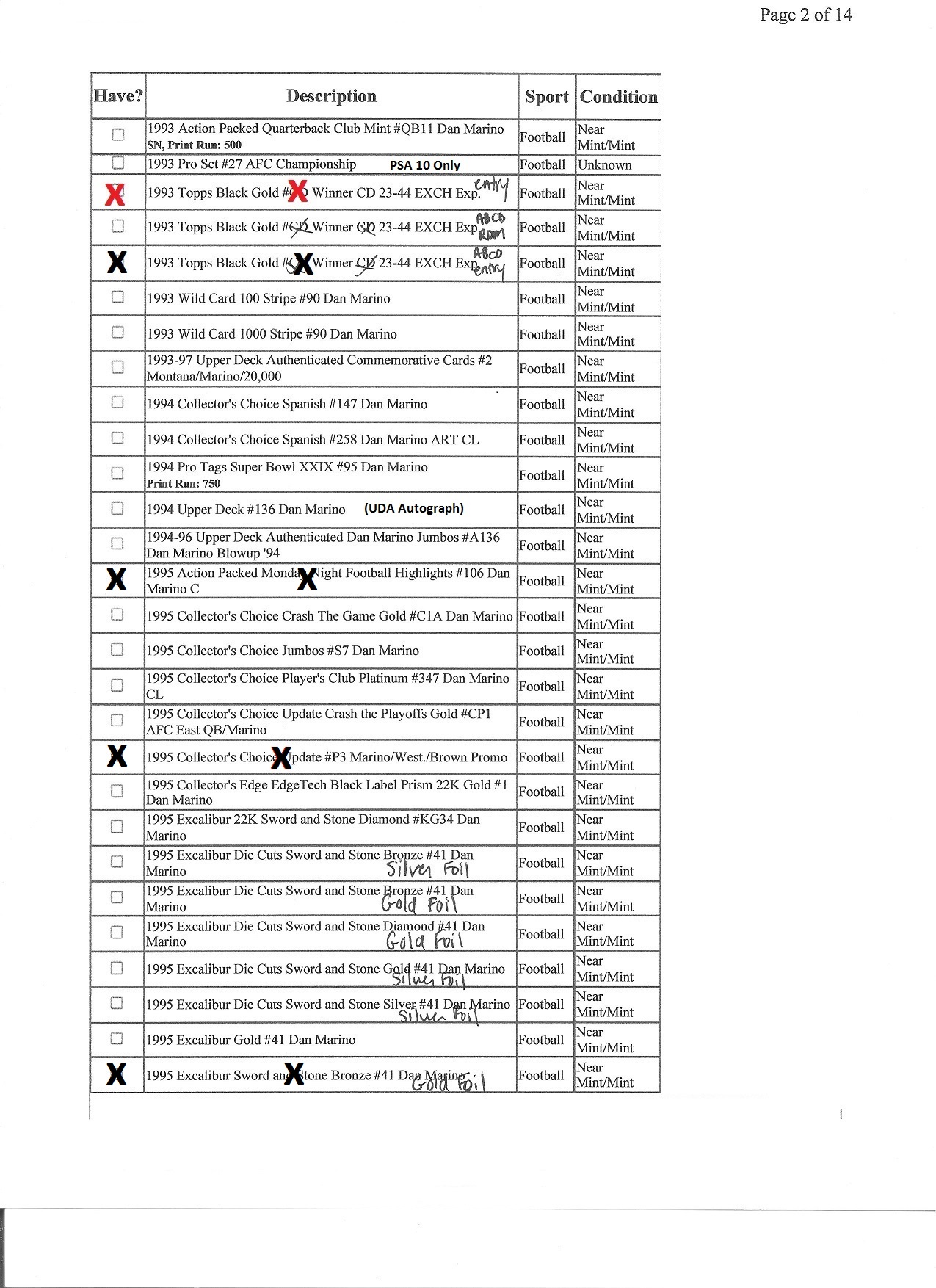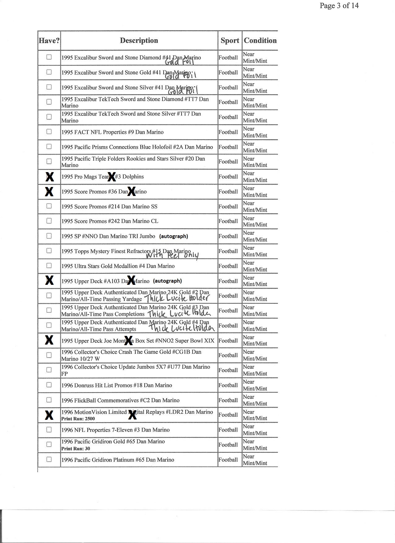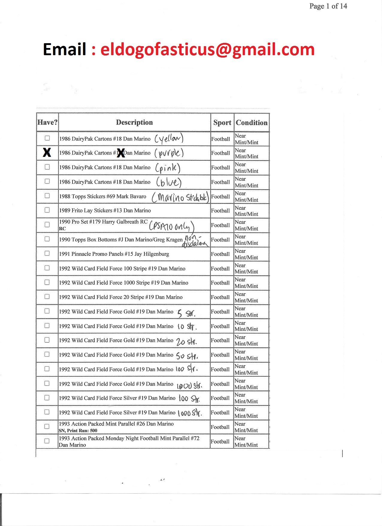 Marino Master Set Want List